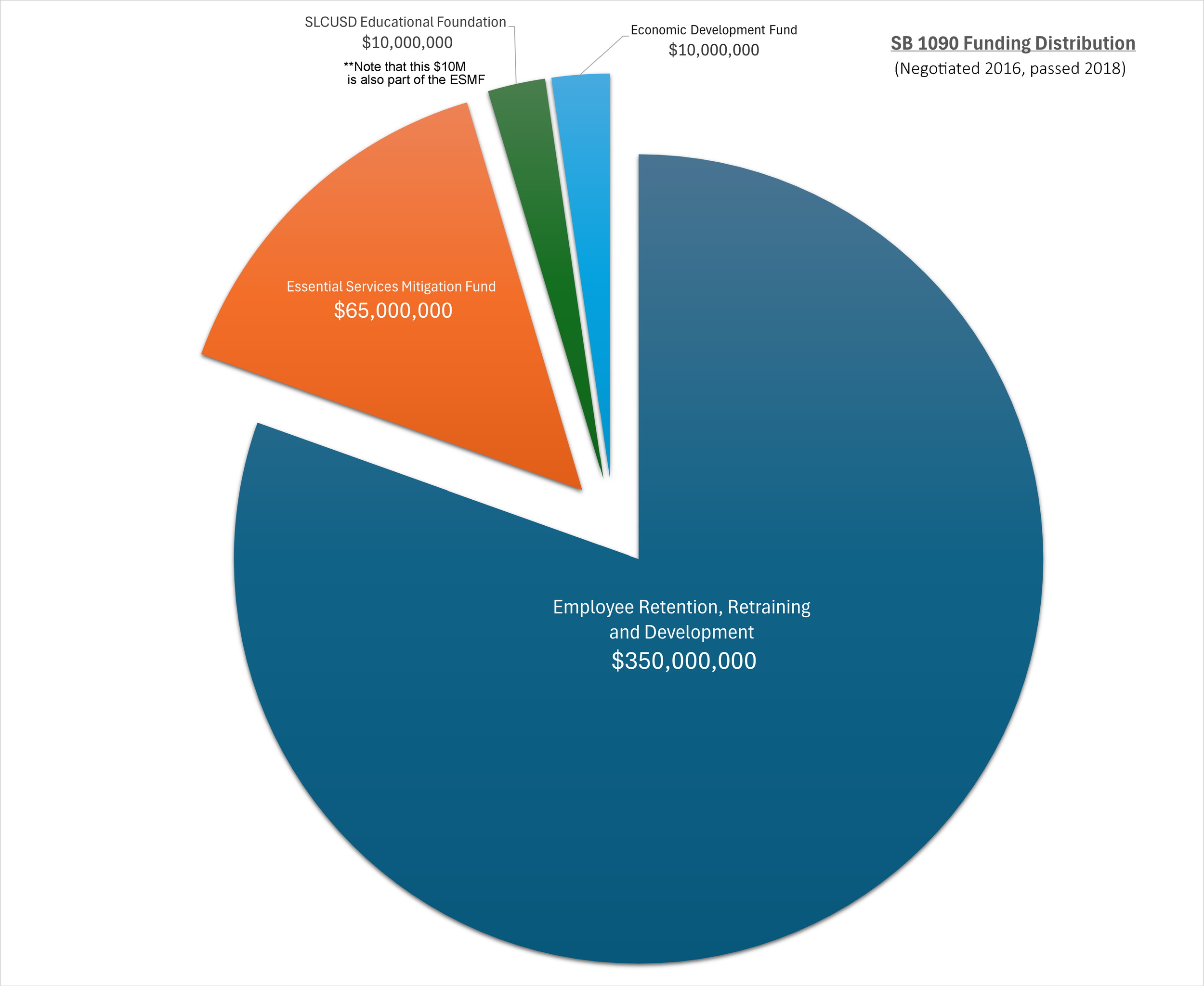 A Community Impacts Mitigation Program (CIMP) providing SLCUSD with over $4 million annually was negotiated and enacted as part of Senate Bill (SB) 1090 in 2018.